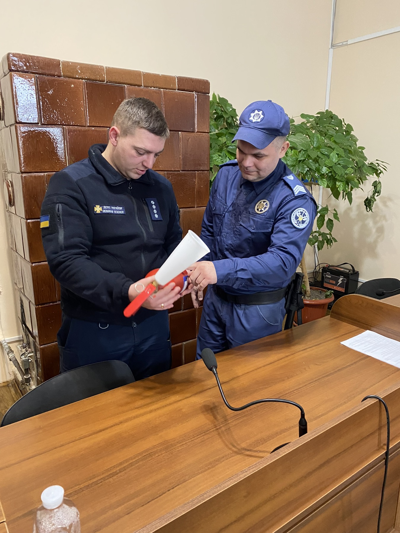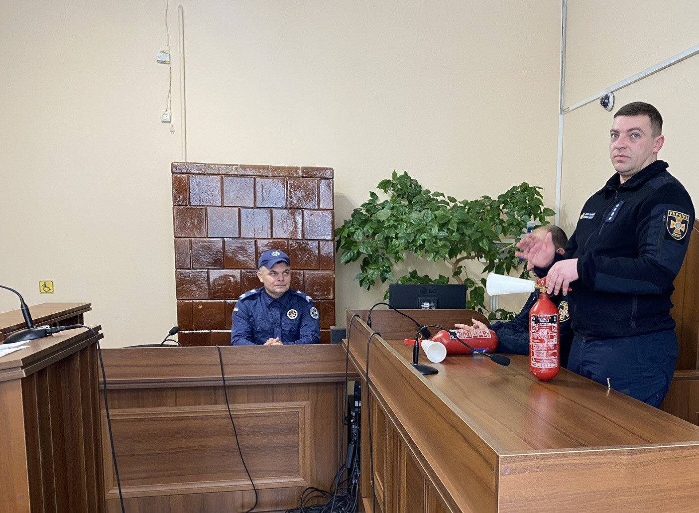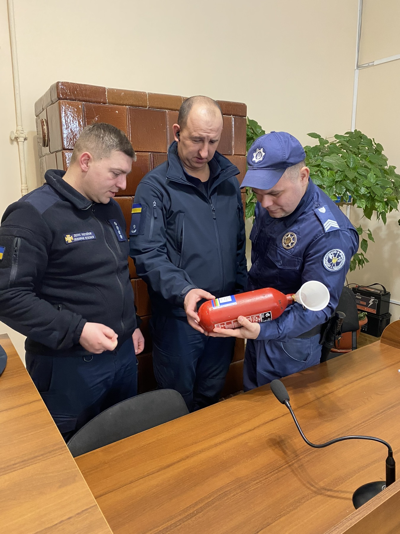 Під час теоретичної частини фахівці ДСНС розповіли про заходи пожежної безпеки як під час здійснення службової діяльності, так і в побуті, ознайомили з алгоритмом дій у разі виникнення пожежі та інших надзвичайних ситуацій, за яким номером телефонувати та детально розповіли як користуватися вогнегасником.